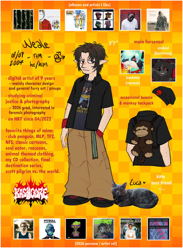 HEYLO! I'm a hobbyist digital artist, character designer, and photographerI am a senior in college studying criminal justice and photography. I create digital works on the side for fun but also to earn a little spending money. Art motivation and post consistency is all over the place-- apologies!My style is very flexible (inconsistent), what I draw ranges from humanoids, furries, ponies, robots.... and most anything else within reason.Please check out my Twitter or Toyhouse to view more of my work as well as contact me via DMs. I only give my discord to friends, IRLs, and my lovely regular commissioners!